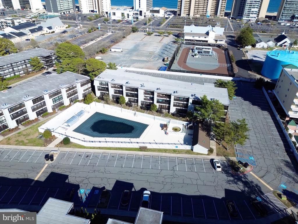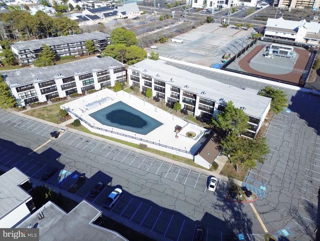 WOW! What a treat it will be for you and your friends or family to sit on this large private balcony overlooking the pool, people watch or view the ever changing skyline at sunset in the evenings. This 2 bedroom, 2 bath spacious and open unit is in a community that contains 10 individual buildings with a total of 192 units sharing the cost of insurances, maintenance and management. There is plenty of parking -- the easterly lot behind building ‘F’ has is for overflow. On-site management by Legum and Norman is helpful for the owners when needed. They maintain the property and continually replace lighting and take care of the grounds, huge outdoor pool and more. It is just a block and a half from Coastal Highway, then cross at the traffic signal and walk a block to the soft sandy beach and Atlantic Ocean. The owners have made many upgrades– interior carpet and outdoor balcony carpet replaced in 2021. In 2022, the electric range, hood, oven and dishwasher were installed in the kitchen. The full size stack washer and dryer were replaced in the hall closet. Kitchen and bath flooring and shelving was installed in the utility closet that year. In 2022, vanity tops, fixtures and Kohler toilets in both bathrooms added. A ceiling fan with LED lighting was installed in the living room plus LED lighting in the kitchen, dining and hallway were added. The condominium was completely painted in 2024. Granite countertops were added, sink and faucet were in the kitchen were replaced in 2022. The water heater with an automatic shutoff valve and 15 year warranty was installed in 2025. The air conditioner/heat pump system (HVAC) was replaced in 2024. This condominium is in great condition. Owners of 38 years never rented and it shows! Basic furniture included.