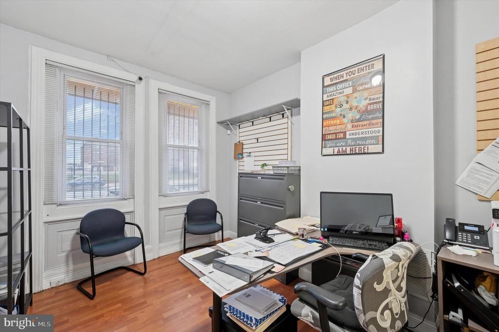 Welcome to this versatile property that offers endless potential for conversion into a comfortable and spacious duplex. Currently used as a medical office, the layout provides a flexible floor plan that can easily be reimagined to fit your residential vision. The first floor welcomes you with a bright reception area that could serve as a cozy living space, followed by a private office with a checkout window which could be used as a bedroom or home office. Two additional rooms offer options for bedrooms, a den, or a playroom, along with a convenient powder room and access to the backyard. Upstairs, the second floor features a full kitchen, a bath with a tub and shower, two additional rooms ideal for bedrooms or an office, and a hallway closet for extra storage. With its adaptable layout and multi-room configuration, this property provides the ideal opportunity to create a personalized residence that fits your lifestyle and needs.