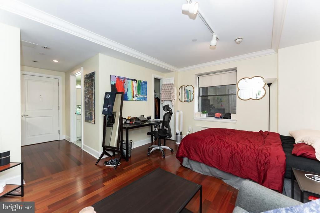 Enter Unit 1516 at The Warwick Condominiums into a generously sized living and dining room with hardwood floors and baseboard moldings throughout. There is an open kitchen with granite countertop, 3/4 height refrigerator/freezer, an enlarged sink, wood cabinetry and stainless steel appliances. The marble-appointed bathroom has a wood vanity, shower/tub, and a GE stackable washer/dryer. This flat could be perfect for a full-time residence or pied-a-terre. Residents of The Warwick enjoy the same amenities as hotel guests including 24-hour door-man service, a state-of-the-art fitness room, and hotel services available for an additional fee.