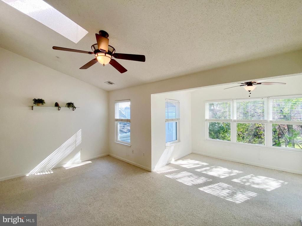 A rarely available top-floor 3-bedroom, 2-bath unit offering peaceful garden views, exceptional privacy, with no overhead noise. Natural light pours in through large windows and high vaulted ceilings with dual skylights, creating a bright and airy living space. It opens to a private balcony overlooking greenery, perfect for unwinding. The kitchen has been fully refreshed with premium quartz countertops, a new sink, a brand-new refrigerator, and modern light grey cabinetry. A breakfast bar opens to the living area, creating an easy and functional flow for everyday living. The layout includes two additional bedrooms and a full bath, leading to a private primary suite tucked at the end of the hall. The primary suite features an en-suite bath and a spacious walk-in closet. Additional highlights include freshly painted walls, two pantry closets, a separate laundry room with a full-size in-unit washer and dryer, and freshly deep-cleaned carpeting throughout. Move-in ready, this home is located in the Wintergate at Longmead community, offering access to swimming pools, scenic trails, and a clubhouse. Easy access to ICC (MD-200), I-495, and I-95. Available now. Schedule your showing today.
