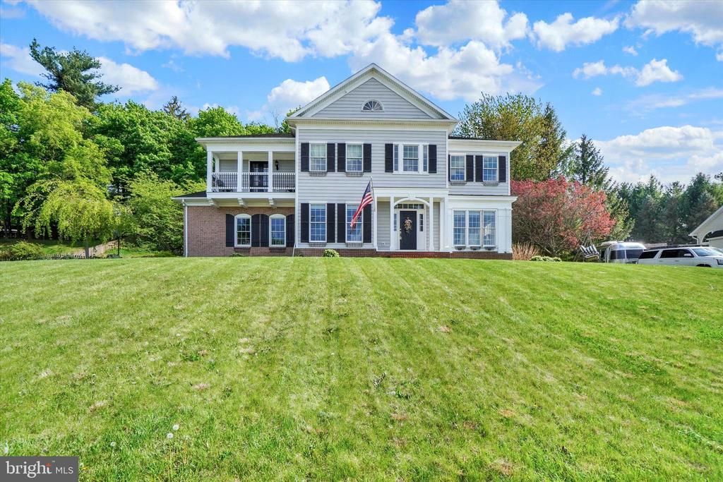 This home is located near a Park with tennis courts and pavilion and the Rail Trail for walking and biking, the 2 Story Foyer makes for an impressive entrance, hardwood floors, crown molding and picture framing add to the charm, the Kitchen has an island, a pantry, a Butler's Pantry, commercial size refrigerator/freezer, 6 burner & grill 9000 BTU dual zone stove and pot filler, the Primary Suite and bathroom offers 2 vanities, jacuzzi tub, separate shower, 2 Walk-in-Closets and door to balcony, there is a "Jack & Jill" bathroom between 2 additional bedrooms. From the kitchen, a door leads to a covered patio and wooded lot, the heating and air conditioning is 2 zoned, there are glass doors between Living Room and Family Room, the ceilings are 9 feet and 10 feet in the Basement, a Radon Mitigation System, and there are pull down stairs in the Primary Bath Walk-in Closet