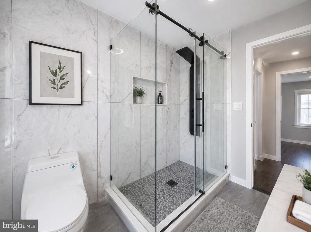 Welcome to 4109 Baring St, a beautifully newly renovated end-of-row home offering modern style and comfort in the heart of Philadelphia. Step inside to find a bright and open floor plan with gleaming hardwood floors, recessed lighting, and a sleek contemporary staircase. The spacious living room flows seamlessly into a stunning chef’s kitchen, featuring white shaker cabinetry, stainless steel appliances, quartz countertops, a large waterfall island, and stylish pendant lighting—perfect for both everyday living and entertaining. Upstairs, you’ll find generous bedrooms and spa-like bathrooms with floor-to-ceiling tile, glass-enclosed showers, and designer finishes that add a touch of luxury. This rare property also boasts a private outdoor space, ideal for relaxing or hosting gatherings. With its thoughtful updates, modern design, and unbeatable location, this home is move-in ready and sure to impress. Don’t wait—this property won’t last long!