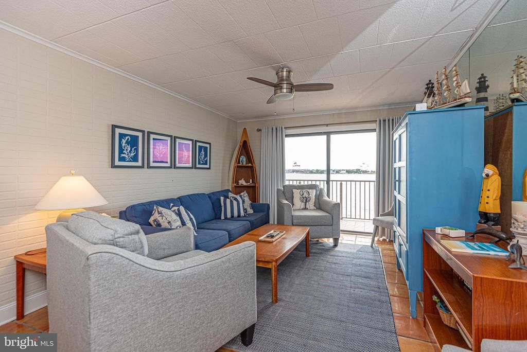 Welcome to 413 Bayshore Drive #201, a beautifully updated three-bedroom, two-bath bayfront condominium offering breathtaking panoramic views, a private boat slip, and an unbeatable downtown Ocean City location near 26th Street. This rare waterfront residence blends relaxed coastal living with the vibrant energy of downtown OC. Situated directly on the bay, this 1,178 sq ft corner unit delivers sweeping water vistas, abundant natural light, and effortless access to the Boardwalk, beaches, restaurants, marinas, and entertainment while maintaining a peaceful, tucked-away ambiance on Bayshore Drive. From the moment you enter, you’re greeted by warm terracotta tile floors, soft coastal hues, and an open concept layout designed for comfort and connection. The spacious living area opens onto an expansive private balcony overlooking the bay, perfect for savoring morning coffee, evening sunsets, or simply relaxing as boats glide past. Large sliding glass doors fill the home with sunlight and frame postcard-worthy views from nearly every angle. The inviting kitchen offers wood cabinetry, tile backsplash, modern lighting, and a peninsula with bar seating that flows into the dining space, creating the ideal setup for entertaining family and friends. The dining area easily accommodates a full size table and enjoys bay views that make every meal memorable. The primary suite is a true retreat, featuring direct balcony access and floor to ceiling water views that welcome the sunrise and sparkle of the bay at dusk. Two additional bedrooms provide flexible sleeping arrangements for guests, kids, or a home office setup. Both bathrooms have been tastefully updated. Step outside and enjoy one of this home’s most valuable features: your own private boat slip. Launch your boat, jet ski, or paddleboard right from your backyard. Whether you’re cruising to dinner, fishing in the bay, or heading out for a sunset ride, life on the water has never been easier. Additional highlights include: • 1,178 sq ft per public record • Three bedrooms • Two full bathrooms • Private boat slip with deep-water access • Large bayfront balcony with unobstructed sunset views • Open-concept living and dining areas • Tile flooring throughout • Updated lighting and fixtures • In-unit washer/dryer • Assigned parking and guest parking • Professionally managed building with well-kept exterior and grounds The Bayshore Condominium community is known for its desirable waterfront setting, strong management, and unbeatable location near 26th Street just a short stroll to the beach, the Boardwalk, Jolly Roger Amusement Park, and dozens of popular restaurants and shops along Coastal Highway. It’s close enough to enjoy all the excitement of downtown Ocean City while still offering tranquility at day’s end. Monthly condo fees (approximately $300) cover exterior maintenance, common area care, insurance, and landscaping offering true low-maintenance, turn-key ownership. Whether you’re searching for a primary residence, vacation retreat, or investment property with strong rental potential, 413 Bayshore Drive #201 stands out as one of Ocean City’s best waterfront opportunities. Enjoy stunning views, easy boating access, and a central location that defines coastal living at its finest. Experience bayside serenity in the heart of Ocean City. Welcome home to Bayshore #201, where every day ends with a sunset over the water.