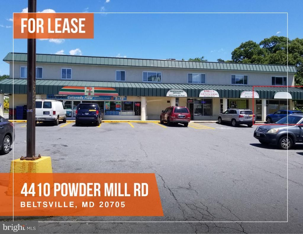 1,300 square feet of retail space. End unit. Open space. Restroom in the rear. Multiple signage opportunities. Parking on-site. Asking $3,500 per month/NNN ( $500 per month) Great access from I-95 North and Route 212 Powder Mill Rd & Route 1. Office Space 600 square feet of second-level open office space. Carpeted, well-lit, and with a window bringing natural light into the space. Asking $1,350 per month/ELEC ($75 per month)