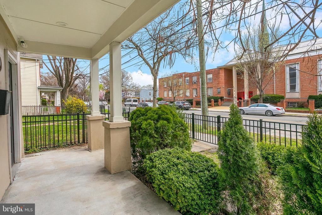 Welcome to this beautifully renovated, and fully detached home in Congress Heights with a charming front porch. Offering updated interior finishes on two levels with high ceilings, and ample natural light throughout. An open floor plan with ceramic tile floors provides flow between the living area, dining area, and kitchen with a convenient peninsula and access to the backyard. The gourmet kitchen features stainless steel appliances, quartz counters, and a gorgeous backsplash. Rounding out this level are a powder room, convenient laundry, and charming built-in shelving. Upstairs are two spacious bedrooms plus a lovely den all with hardwood floors, and two full bathrooms. Enjoy a patio overlooking the fully fenced backyard with an option for private parking. Proximity to the Congress Heights Metro is ideal and less than one mile. The Recreation Center is located across the street with sport courts and outdoor amenities. Conveniently located one block from the new GW Hospital SE campus and all new development in Congress Heights.
